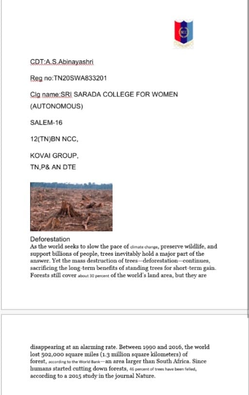 CDT:A.S.Abinayashri Reg no:TN20SWA833201 Clg name:SRI SARADA COLLEGE FOR WOMEN (AUTONOMOUS) SALEM-16 12(TN)BN NCC, KOVAI GROUP, TN,P& AN DTE