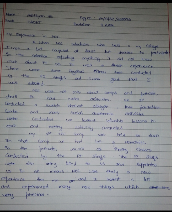 Article writing on my experience in NCC