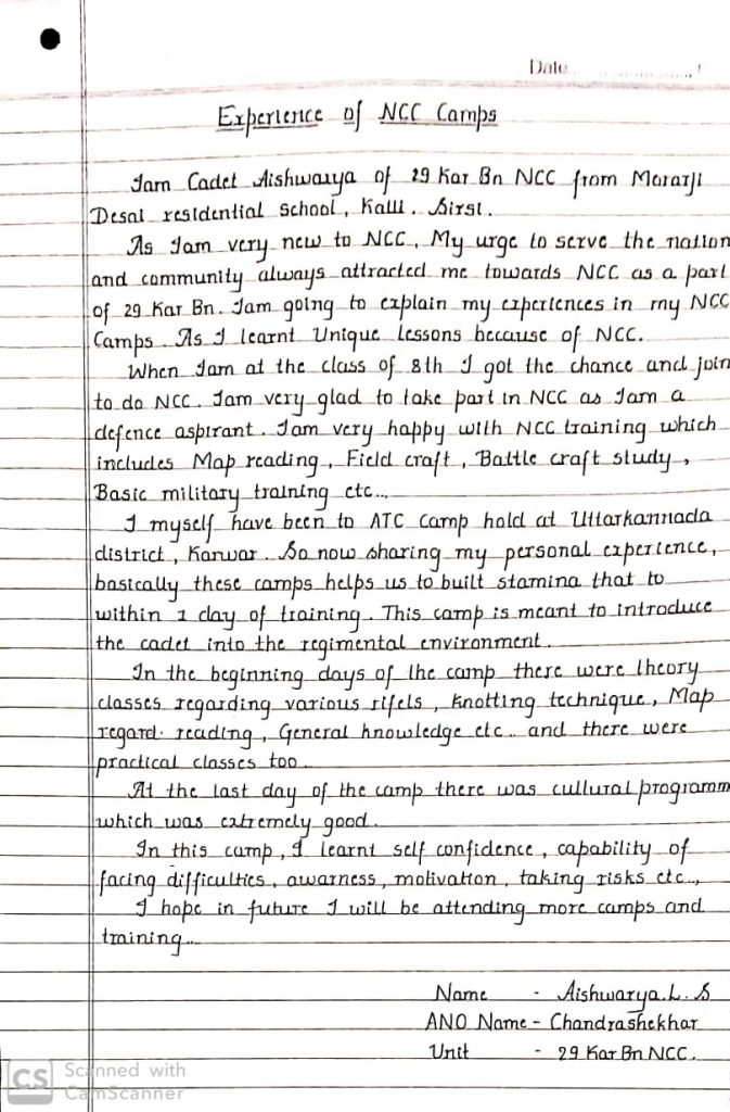 Aishwarya L S - It is about my experiences in NCC Camp