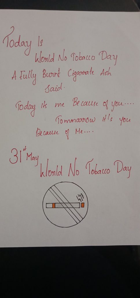 World no Tobacco day.. No ?.. smoking couses cancer...