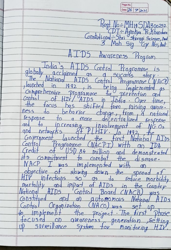 3 MAH SIG COY, AMT REGT NO :- MH19SDA300252 CDT :- AJINKYA R. KHANDARE CONSTUTIONAL :- SHRI SHIVAJI SCIENCE COLLAGE, AMT