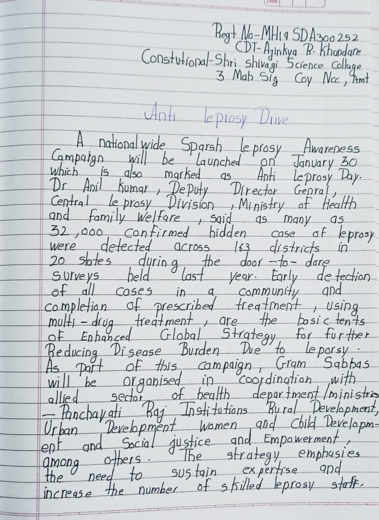 3 MAH SIG COY AMT REGT NO :- MH19SDA300252 CDT :- AJINKYA R. KHANDARE CONSTUTIONAL :- SHRI SHIVAGI SCIENCE COLLAGE, AMT