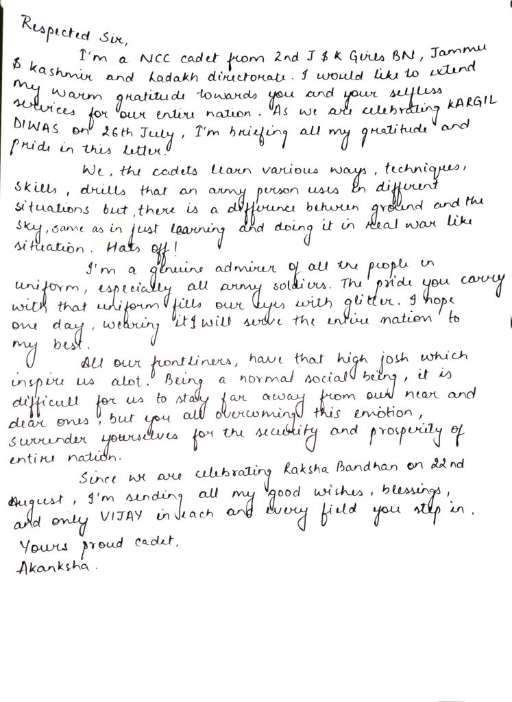 LETTER TO A SOLDIER All my gratitude and pride briefed! Hats off! To all the warriors of this nation. A PRIDE FILLED CADET.