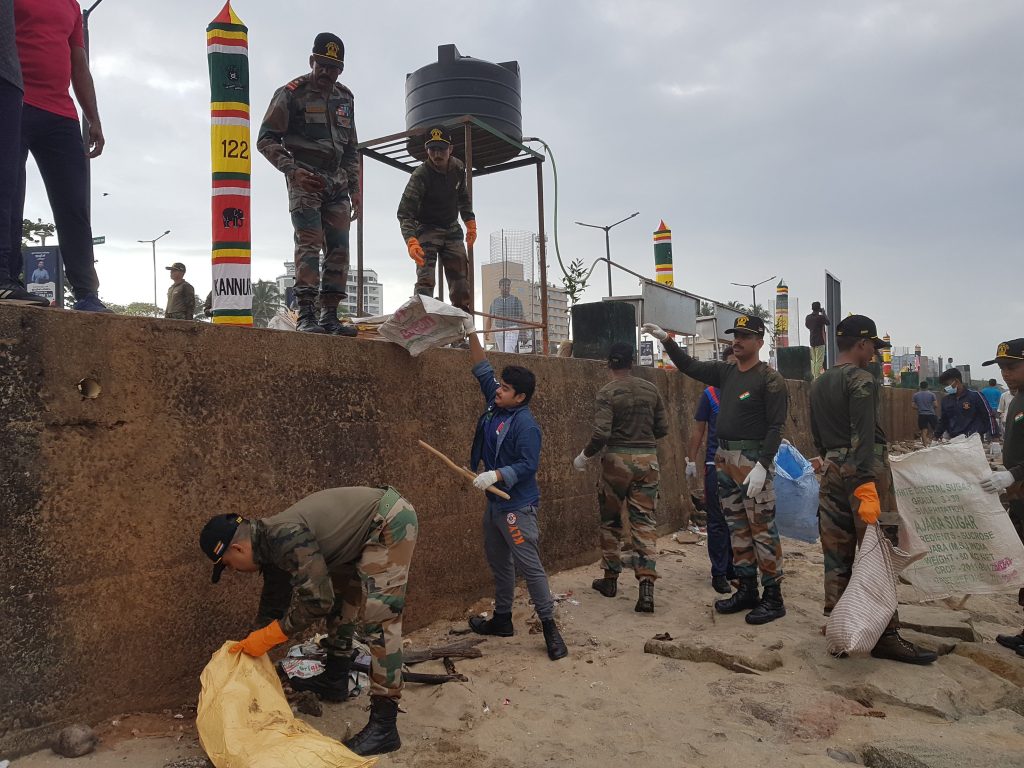 122 INF BN (TA) MADRAS and NCC cadets conducted a clean-up program at Kozhikode beach, Calicut. Calicut defence trust and care and Red FM organized this program.