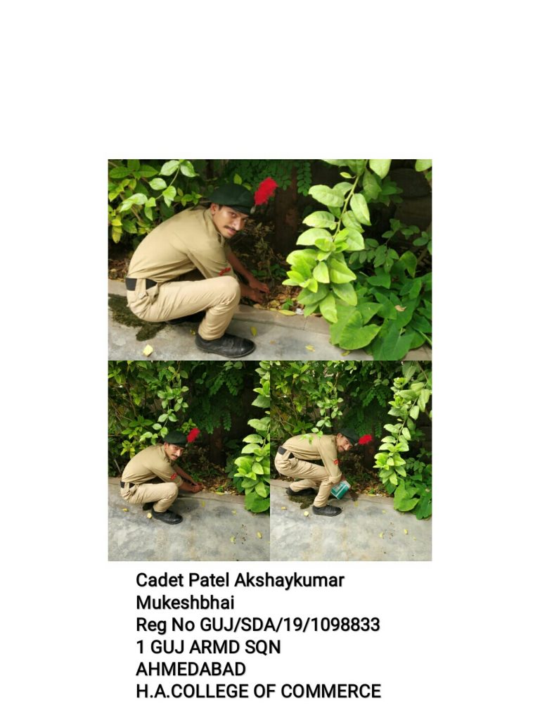 Reg No GUJ/SDA/19/1098833 Cadet Patel Akshaykumar Mukeshbhai 1 GUJ ARMD SQN Ahmedabad H.A. College of commerce