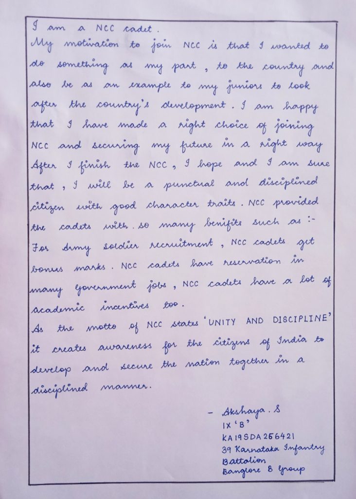 I am Akshaya S of 9B 39 Kar Infantry Battalion
