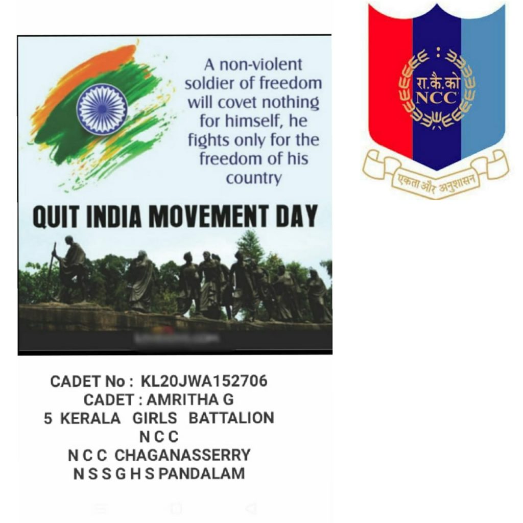 CADET No : KL20JWA152706 CADET : AMRITHA G 5 KERALA GIRLS BATTALION N C C N C C CHAGANASSERRY N S S G H S PANDALAM