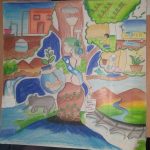 This drawing is drawn by cadet anuska saikia. In this portrait a women is shown as a mother of the nature. Her saree is shown in the form of waterfall and she's holding a pot which it is shown as a plant is growing froma baby's womb .