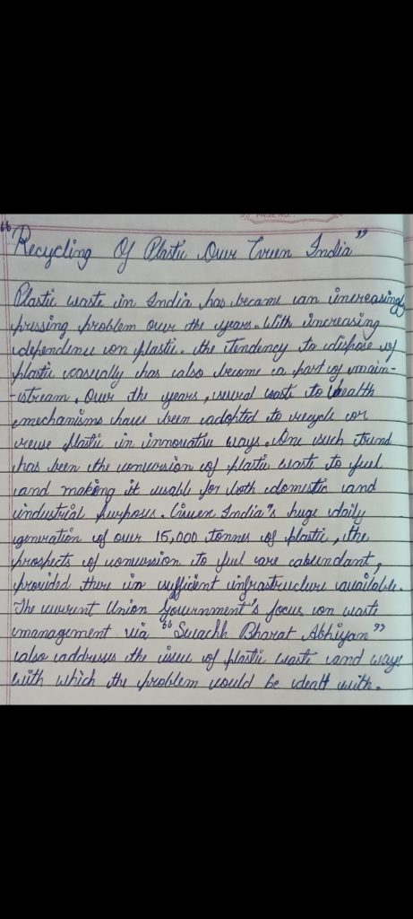 Aparna jangir Topic-Reuse of plastic over green india