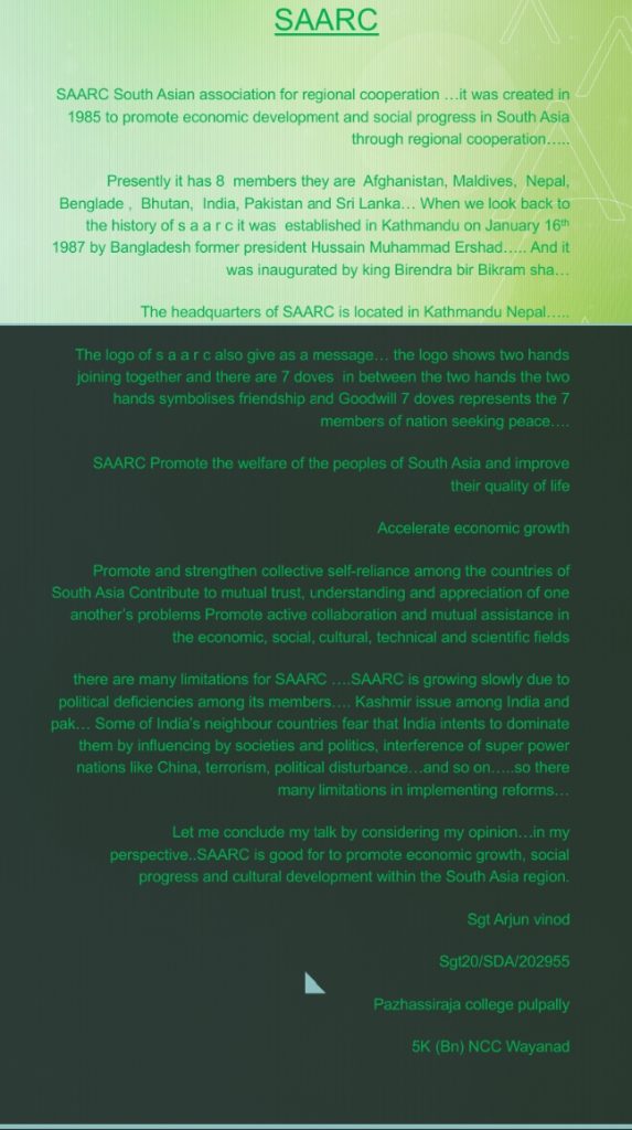 I'm Sgt Arjun vinod KL/20/SDA/202955 from pazhassiraja college pulpally, 5K (Bn) NCC wayanad