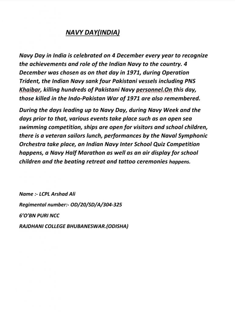 LCPL ARSHAD ALI , REG NO:- OD/20/SD/A/304-325, 6\'O\'BN PURI NCC, RAJDHANI COLLEGE BHUBANESWAR ,