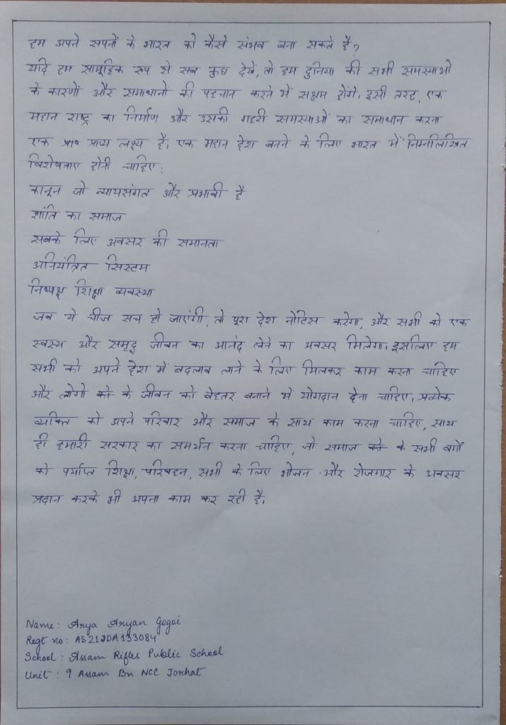 I am Cadet Arya Aryan Gogoi of 9 Assam Battalion NCC Jorhat. I am studying in 9th standard at Assam Rifles Public School