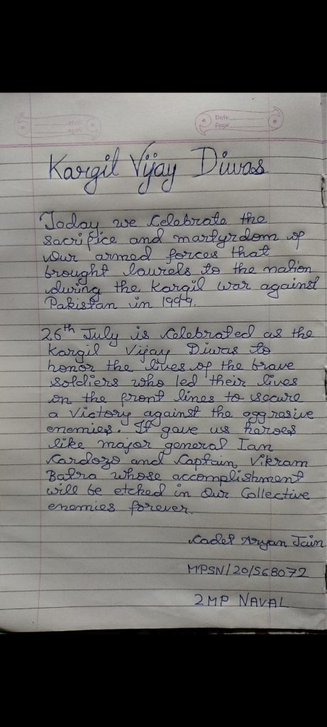 Cadet Aryan Jain MPSN/20/568072 2 MP NAVAL