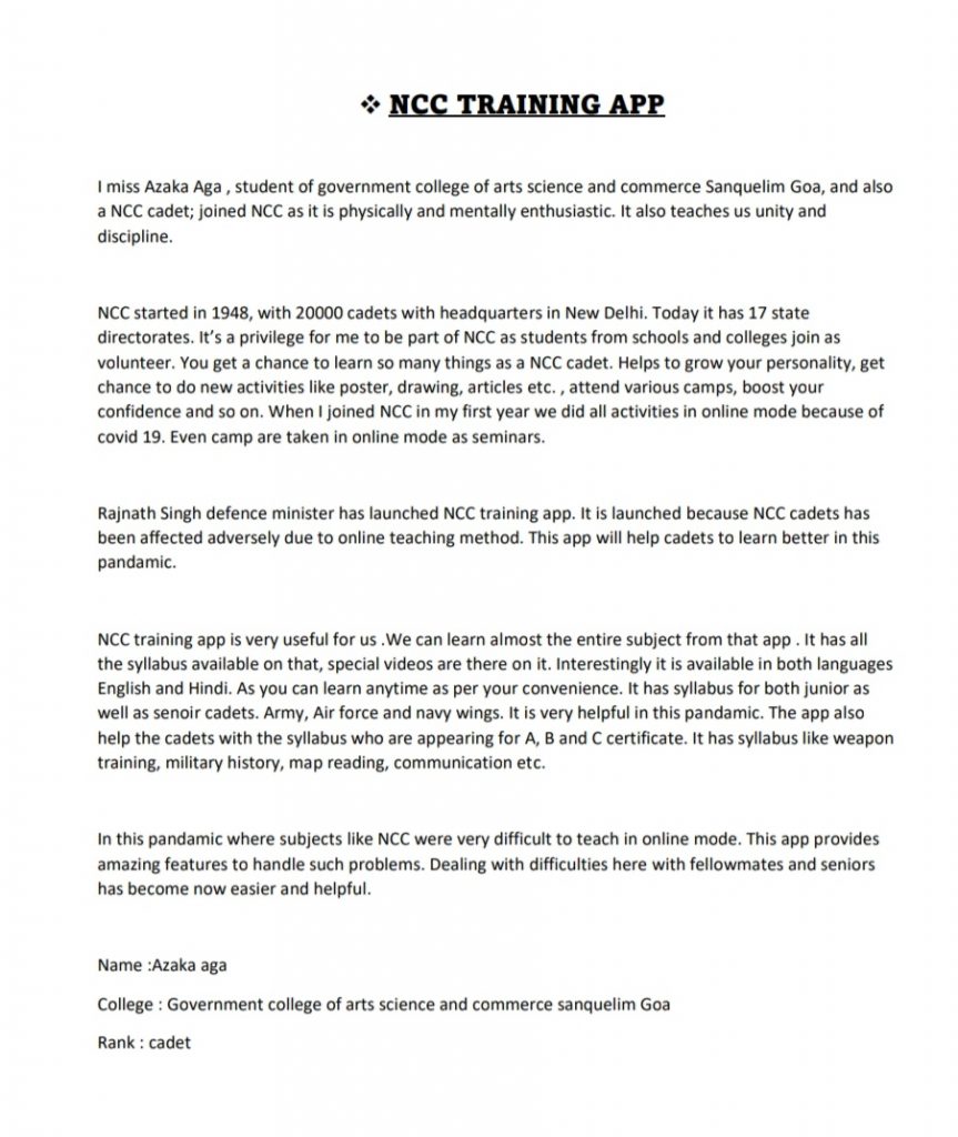Azaka aga Government college of arts science and commerce sanquelim Goa 1 GOA GIRLS BATTALIAN NCC Cadet