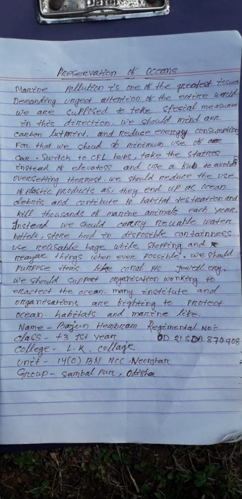 Cadet- Bajun Hembram 14(O)BN NCC, Keonjhar L.K. College Bangriposi