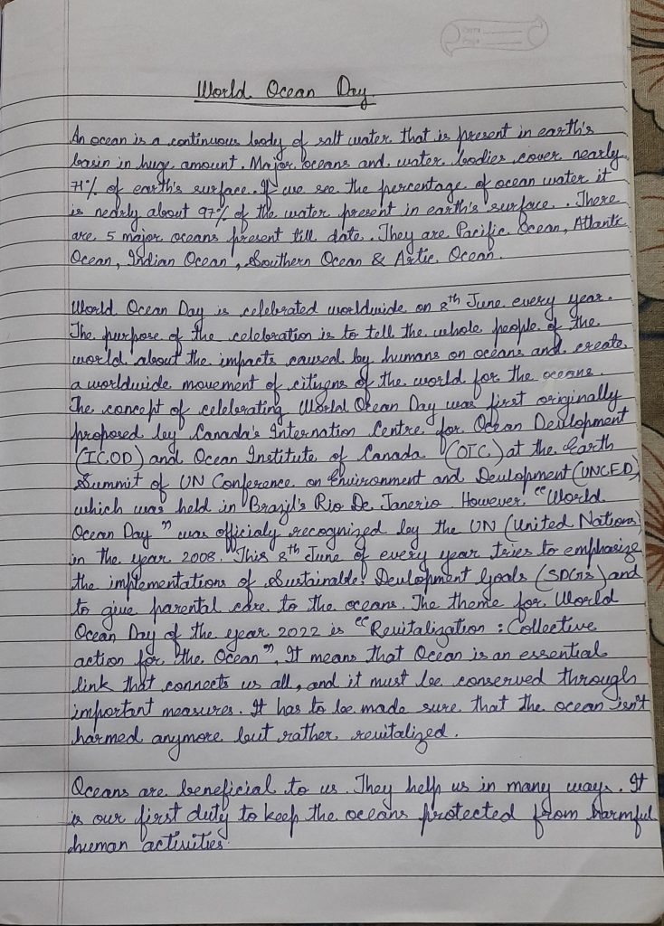 An essay about world ocean day