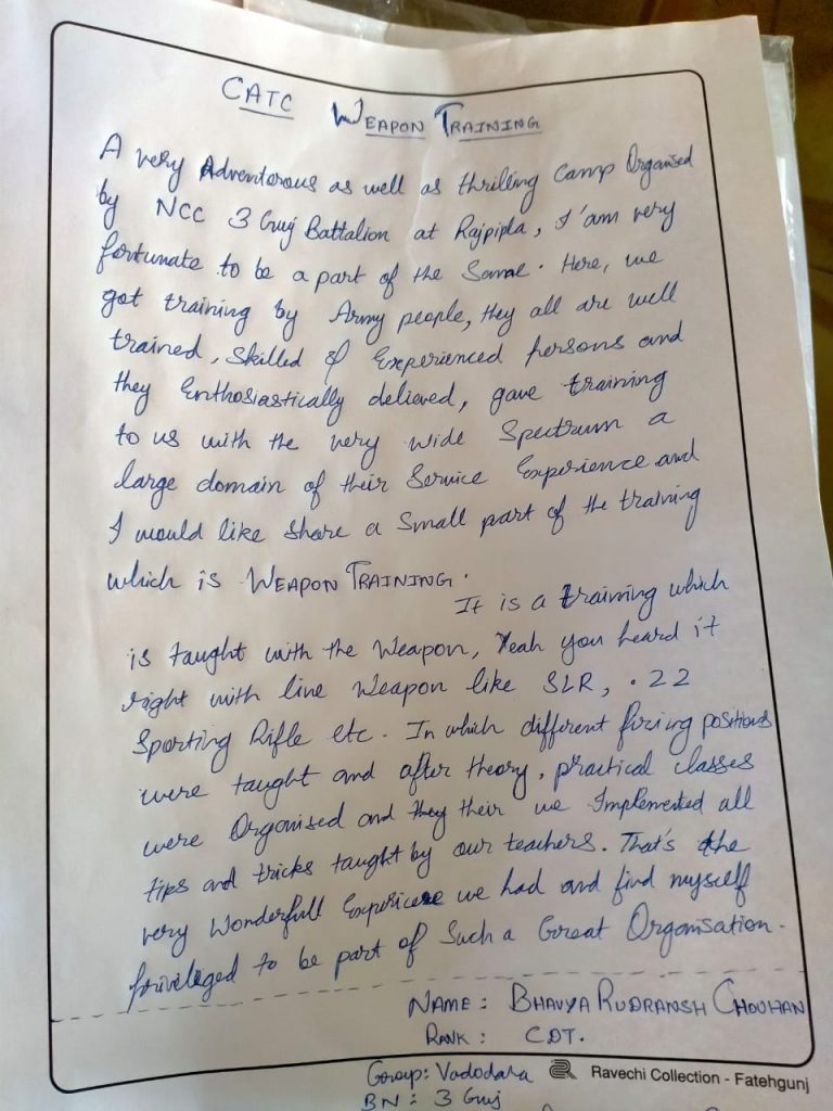 Name - BHAVYARUDRANSH CHOUHAN 3 GUJ BN , VADODARA GROUP, GUJARAT
