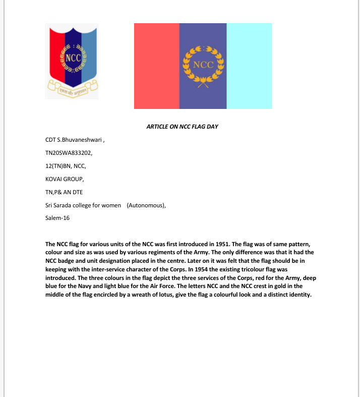 Article on NCC FLAG Day