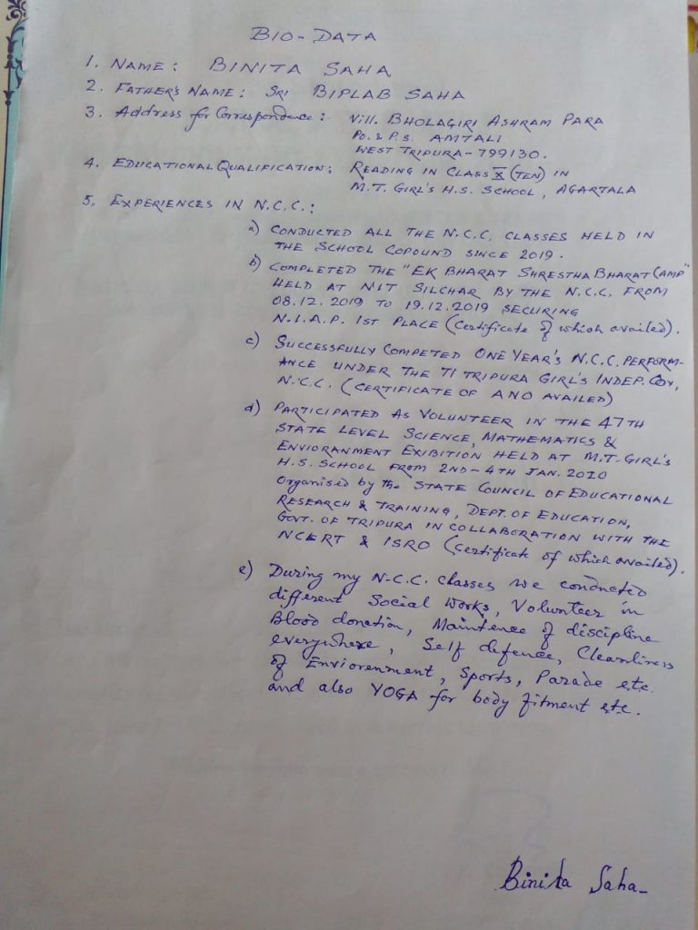 Binita Saha Maharani Tulshibati Girls Higher Secondary School 71 Tripura Girls (I) COY NCC