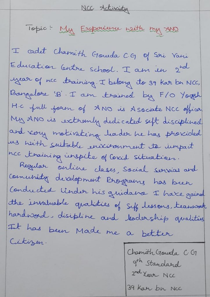 Chamith gowda C.G 9th standard 39 Kar bn ncc , Bangalore