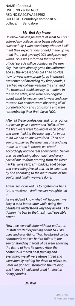 Unit : Kar Inf Bn , Group HQ : NCC Gp HQ Bangalore B, Directorate : NCC Dte, Kar & Goa