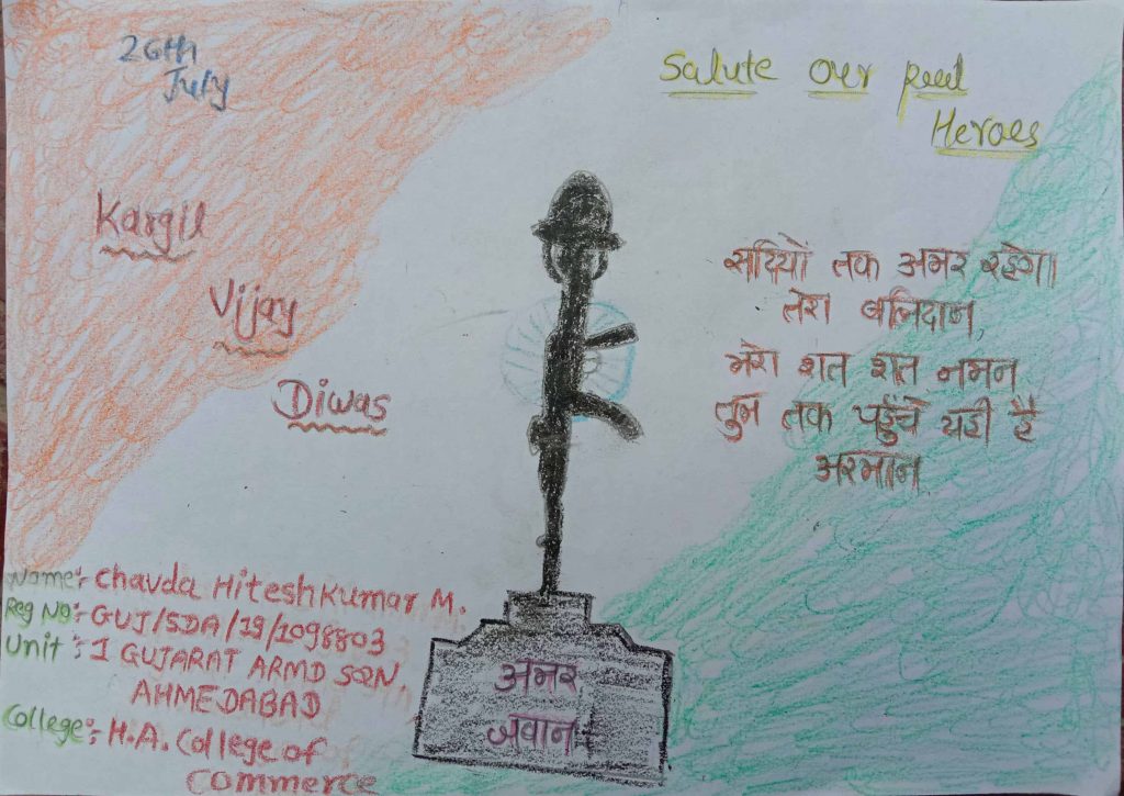 CEDET CHAVDA HITESHKUMAR MAHENDRASINH REG NO:-GUJ/SDA/19/1098803 UNIT:- 1 GUJARAT ARMD SQN, AHMEDABAD COLLEGE:- H. A. COLLEGE OF COMMERCE DRAWING ON KARGIL VIJAY DIWAS