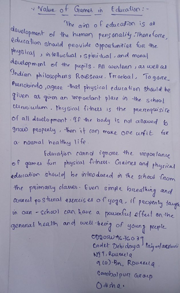 OD20SWA676039 CADET DEBIDAYA PRIYADARSHINI NIT ROURKELA 9(O) BN ROURKELA SAMBALPUR GROUP ODISHA