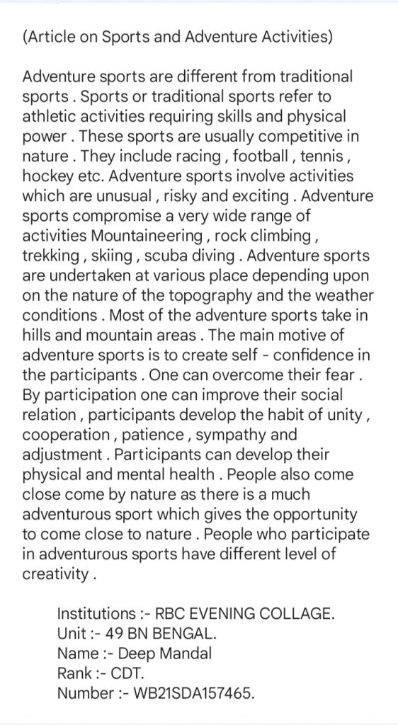 NAME : Deep Mandal REG NO : WB21SDA157465 RANK : CDT UNIT : 49 BN NCC COLLEGE NAME : RBC EVENING COLLEGE.