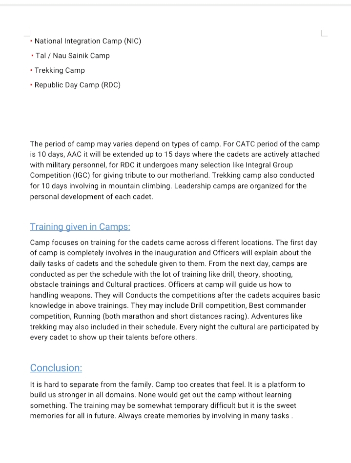 Unit : Kar Inf Bn , Group HQ : NCC Gp HQ Bangalore B, Directorate : NCC Dte, Kar & Goa