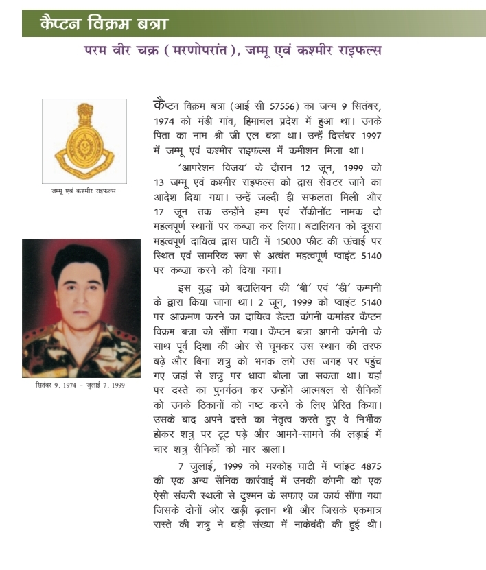 Captain Vikram Batra, PVC was an officer of the Indian Army, awarded with the Param Vir Chakra for KARGIL WAR.