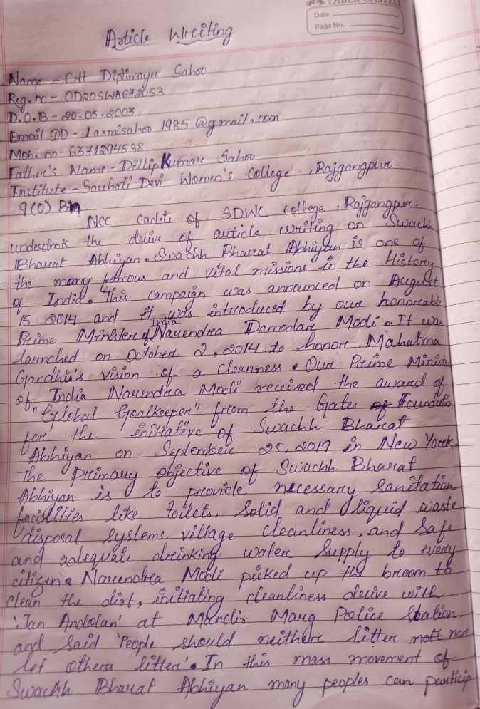 I am NCC CADET of SDWC college rajgangpur