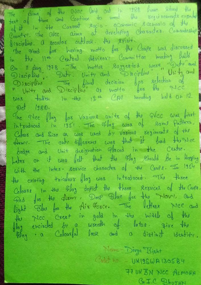 Iam cadet.Divya bisht from Uttarakhand 77ukbn ncc almora.Gic bhujan