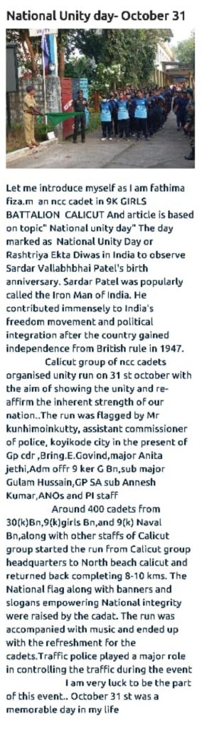About the program conducted on 31 st October 2022 as the national unity day