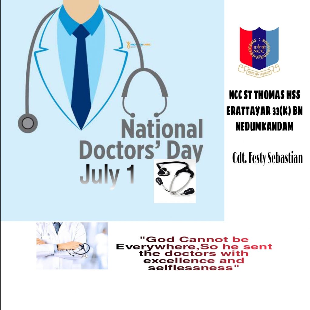I am Cdt.Festy Sebastian from St Thomas HSS Erattayar 33(k) Bn NCC Nedumkandam. The real heroes of our universe is our Doctors.. Medicines cure diseases, But only Doctors can cure Patients..