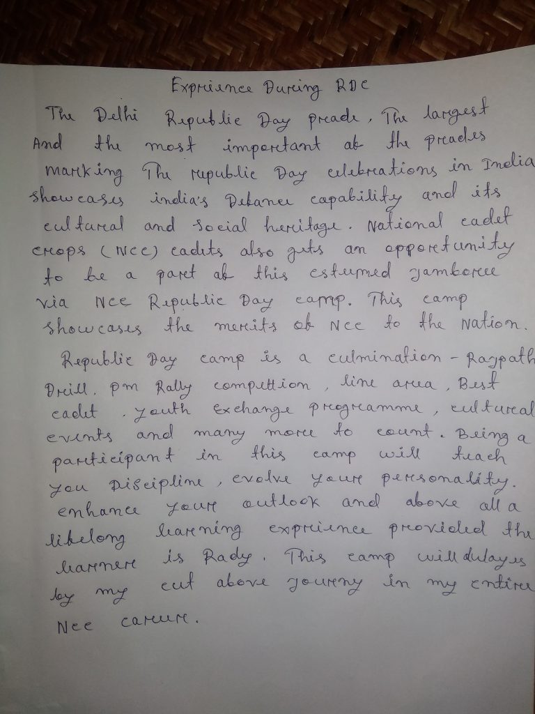 I am cadet Gautom hazarika college: DKD college unit : 9 th Assam BN NCC jorhat Regimental no: AS20SDA117156