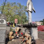 Sir P Kesavan statue cleaning