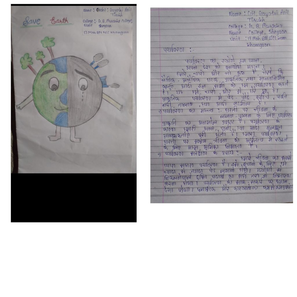 Jay Hind Cdt. Gayatri Anil Tirukh G. B. Murarka college shegaon 13 Mah Bn Ncc Khamgaon "Save Environment, Save?"