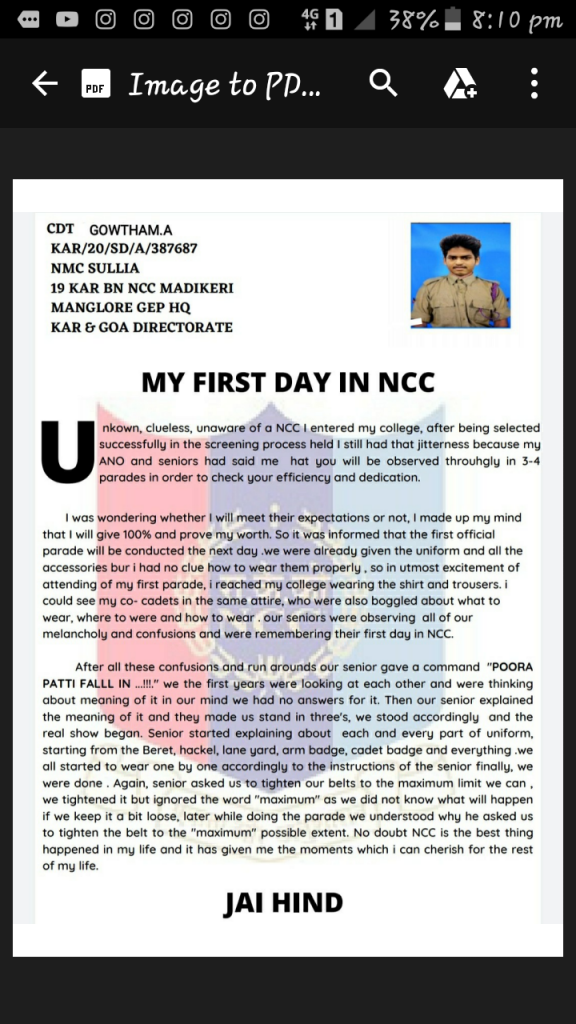 Cadet Gowtham.A KAR/20/SD/A/387687