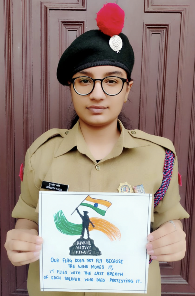 I am CPL Gurleen Kaur of swami Sant Dass public school from 8 Punjab BN NCC Phagwara. Here is my slogan on Kargil Vijay Diwas...