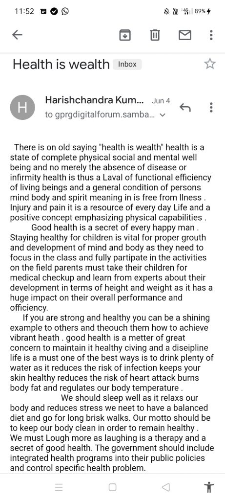 Health is wealth health is a state of complete physical social and mental well being and not merely the absence of disease or infirmity