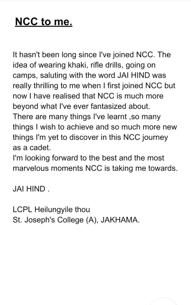 Unit : 1 Naga Girls Bn NCC, Kohima ,