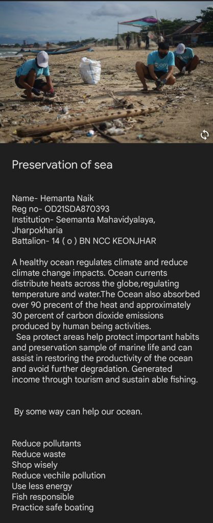 The article wrote by my self Hemanta Naik a NCC cadets. Studying at Seemanta Mahavidyalaya, Jharpokharia in +3 1st year with BOTANY HONOURS.