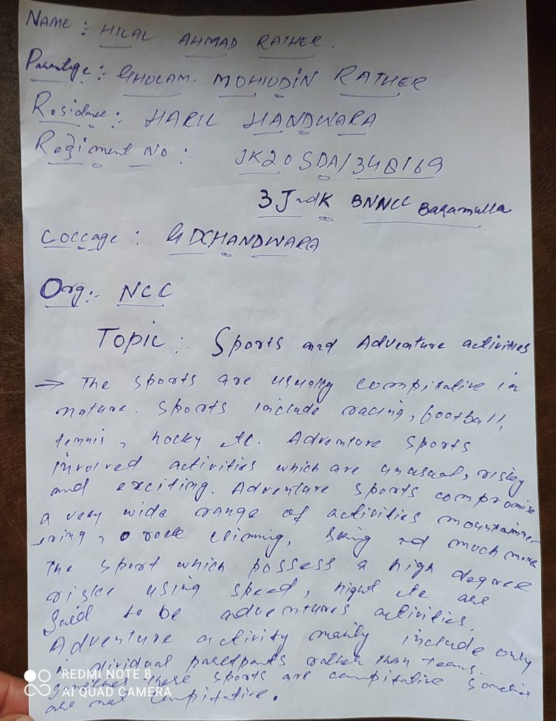 Hilal ahmad rather GDC Handwara Jk20SDS/348169 3J&kBNNCC Baramulla