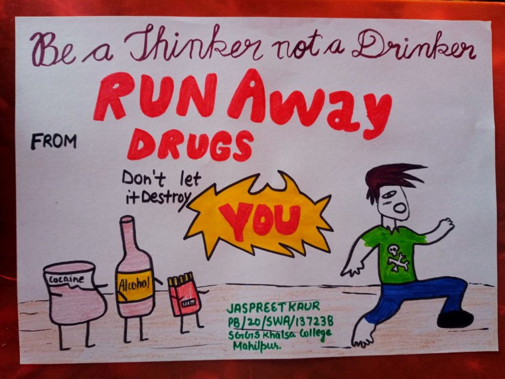 I am L/CPL Jaspreet Kaur PB/20/SWA/137238 8 Pb Bn NCC Unit Phagwara SGGS Khalsa College Mahilpur Here I have shared a poster made by me on the topic Stop Drugs.