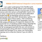 I am cadet l.joshnapriya I am so excited to share my experience in the camp I participated.thankyou