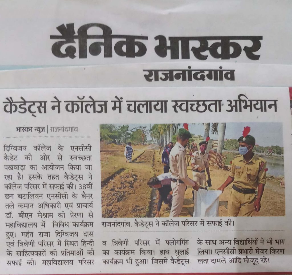 स्वच्छता अभियान के तहत शास. दिग्विजय महाविद्यालय राजनांदगाँव छत्तीसगढ़ के परिसर मे सफाई की गई।