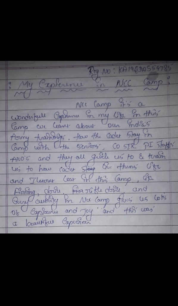 Name : karthik narayan daivajna College : mes mm arta & science college sirsi( karnataka ) Reg no. : KA19SDA554785 Rank : cadet Unit : 29 KAR NCC Gp hq. : Belagavi Dte. : Goa & Karwar
