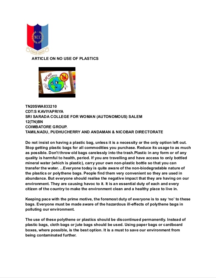 TN20SWA833210 CDT:S KAVIYAPRIYA SRI SARADA COLLEGE FOR WOMAN (AUTONOMOUS) SALEM 12(TN)BN COIMBATORE GROUP. TAMILNADU, PUDHUCHERRY AND ANDAMAN & NICOBAR DIRECTORATE