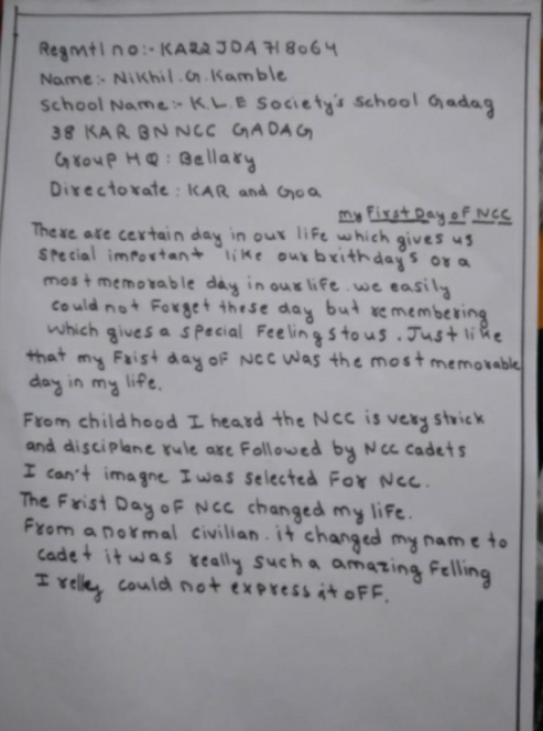 Nikhil G kamble DOB:4/4/2009 SCHOOL:KLE SOCIETY SCHOOL GADAG CLASS:8TH C