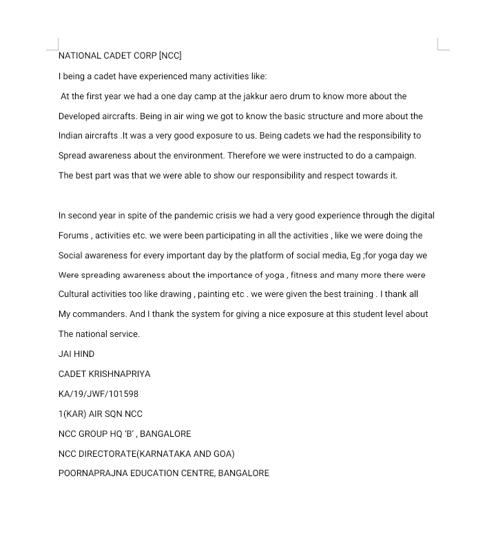Unit : Kar Air Sqn NCC , Group HQ : NCC Gp HQ Bangalore B, Directorate : NCC Dte, Kar & Goa